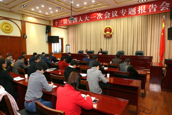 3月23日,县人大召开十三届全国人大一次会议专题报告会。一至十三届全国人大代表、老劳模申纪兰,县人大常委会主任宋忠义,县人大常委会副主任王丙旗、李建民、张安庆、郭江明及县人大常委会组成人员参加会议。